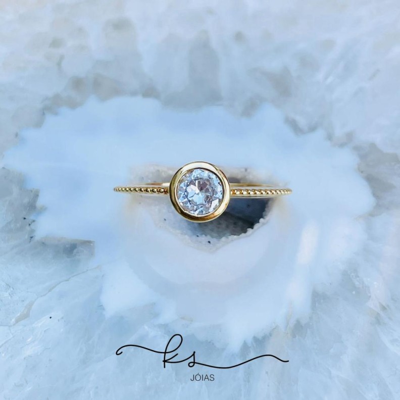 anel ouro bolinha cristal cravação inglesaConfira opiniões e avaliações de clientes!