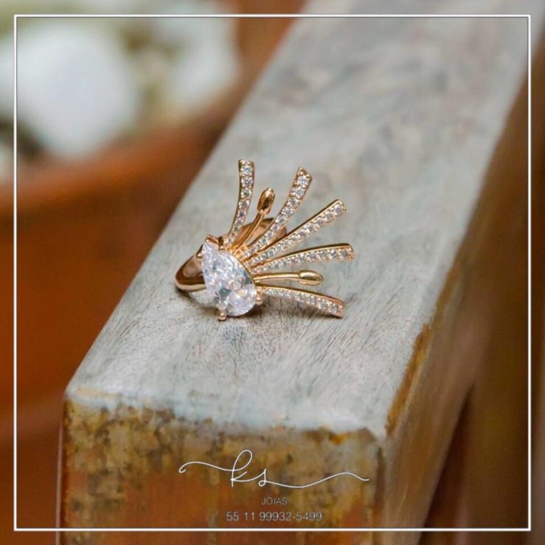 anel ouro rose champanhe grande gota cristal com 5 fios zirconias +2 lisos para a lateralConfira opiniões e avaliações de clientes!
