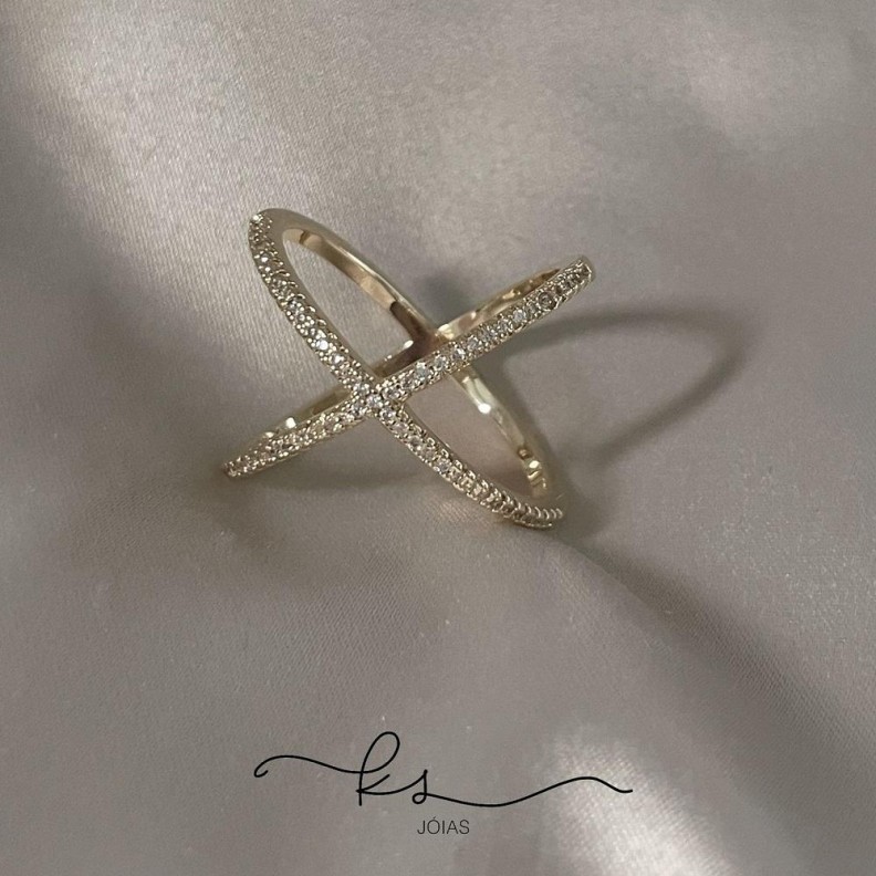 anel ouro X cravejado zircôniasConfira opiniões e avaliações de clientes!