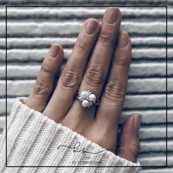 anel rodio base forma flor com 3 perolasConfira opiniões e avaliações de clientes!