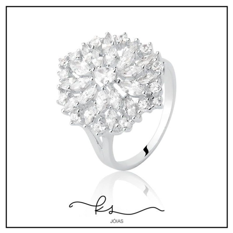 anel rodio flor com cristais navetes brancosConfira opiniões e avaliações de clientes!
