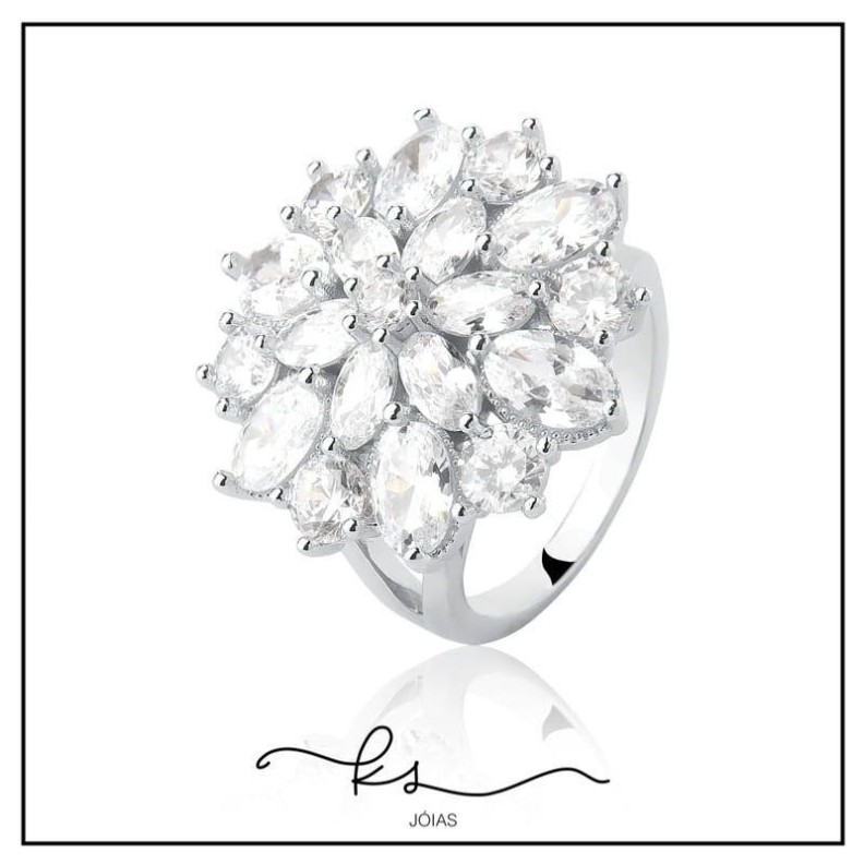 anel rodio flor com cristais ovais brancosConfira opiniões e avaliações de clientes!