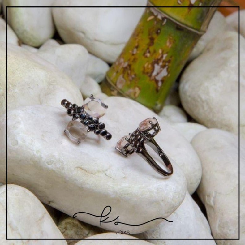 anel ródio negro 2 ovais morganita meio linha zircônias negrasConfira opiniões e avaliações de clientes!