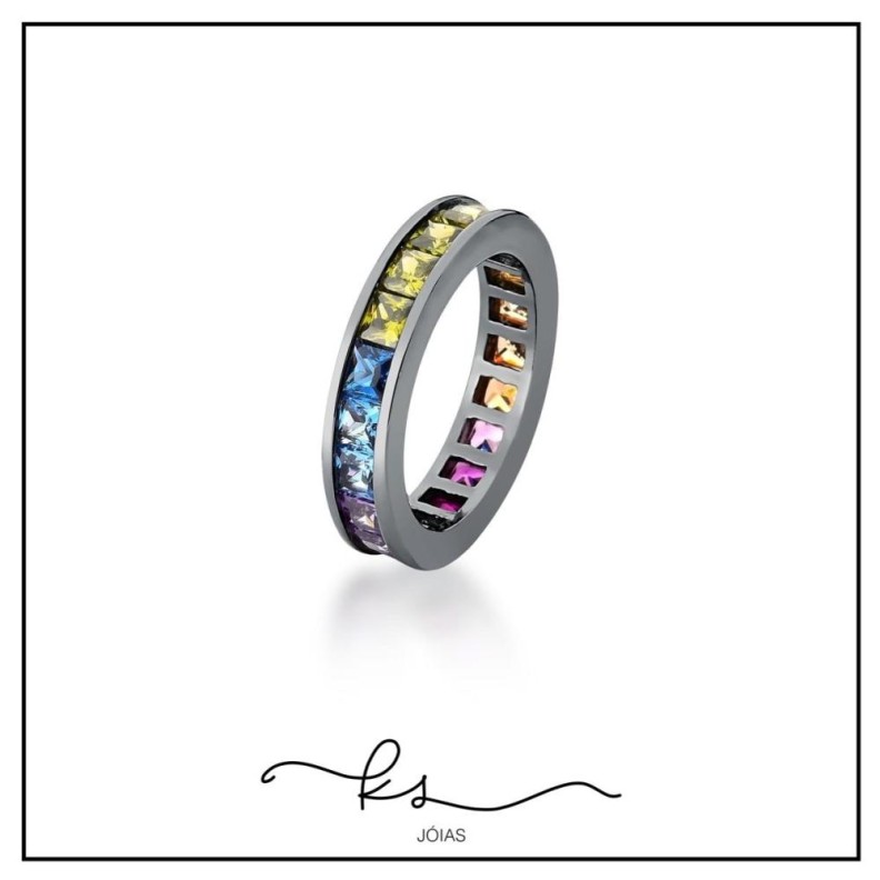 anel ródio negro aparador grosso cravejado zircônias multicolorConfira opiniões e avaliações de clientes!