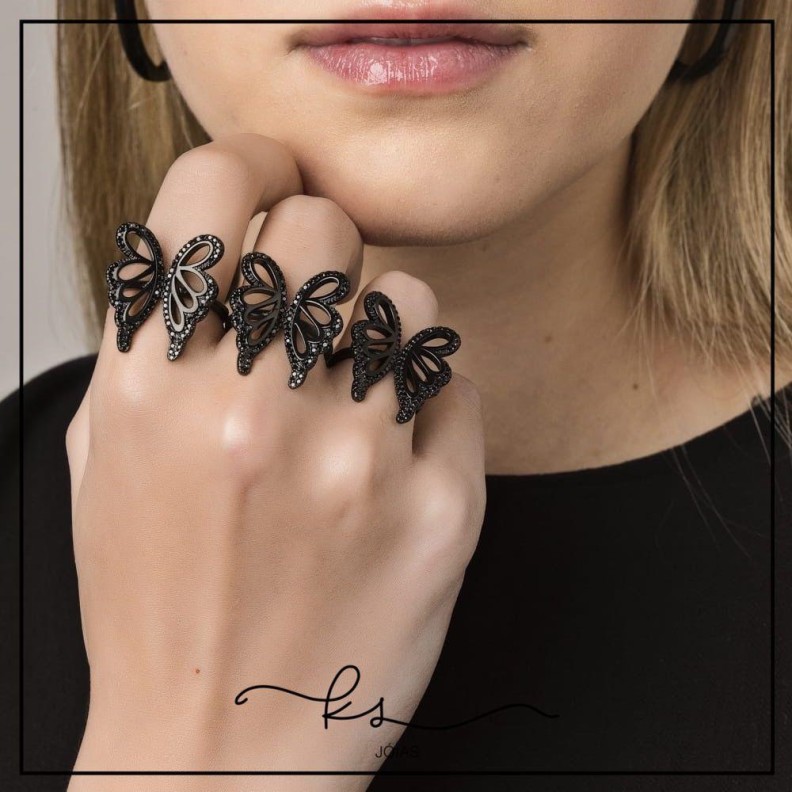 anel ródio negro borboleta vazada cravejada zircônias negrasConfira opiniões e avaliações de clientes!