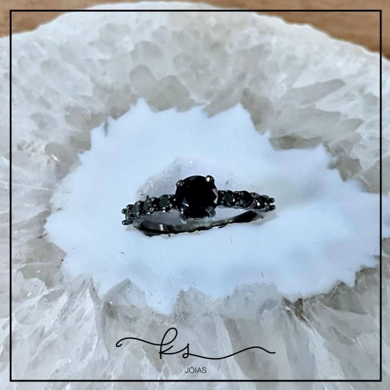 anel ródio negro solitário cristais pretosConfira opiniões e avaliações de clientes!