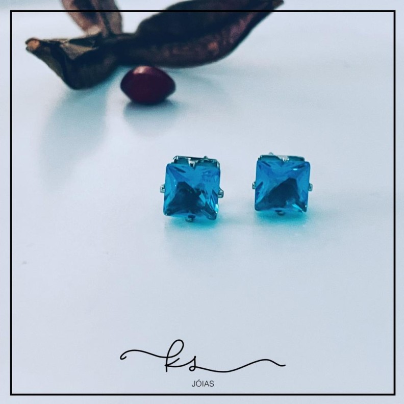 brinco aço quadrado cristal azul GConfira opiniões e avaliações de clientes!