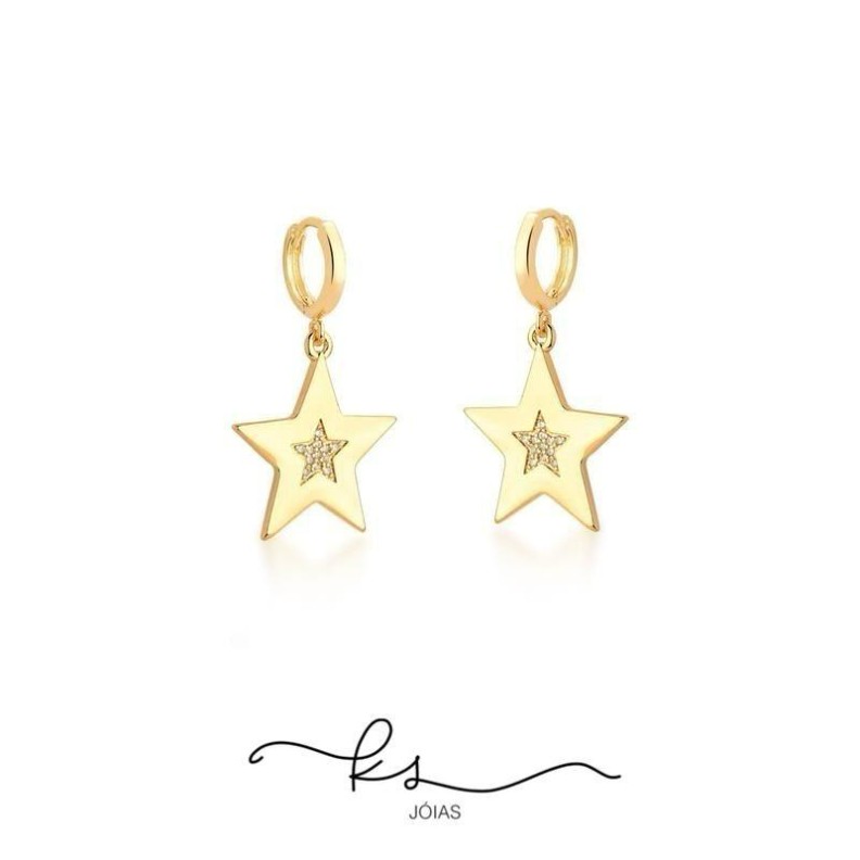 brinco argola ouro com estrela cravejada penduradaConfira opiniões e avaliações de clientes!