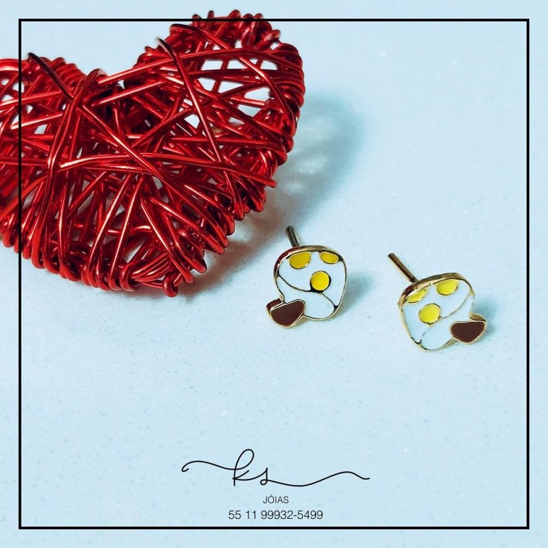 brinco infantil ouro cogumelo bolinhas amarelasConfira opiniões e avaliações de clientes!