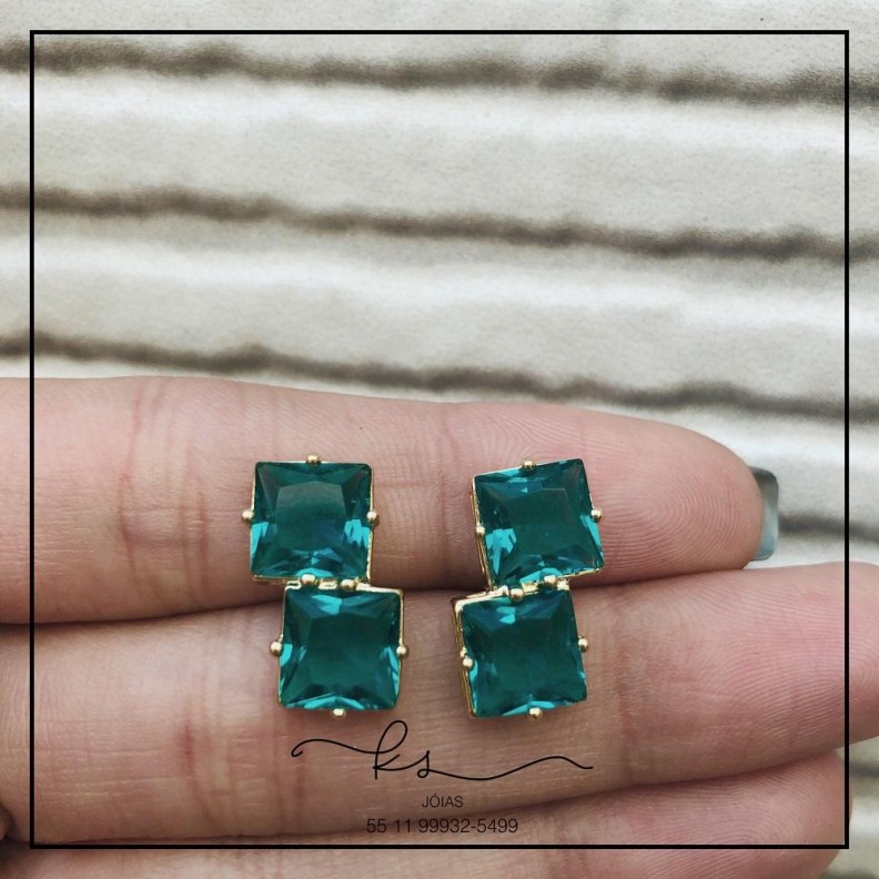 brinco ouro 2 quadrados medios cristal verdeConfira opiniões e avaliações de clientes!