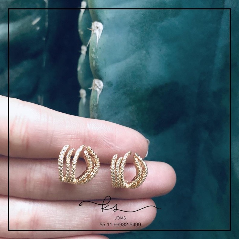 brinco ouro 5 filetes tramados abraca orelhaConfira opiniões e avaliações de clientes!