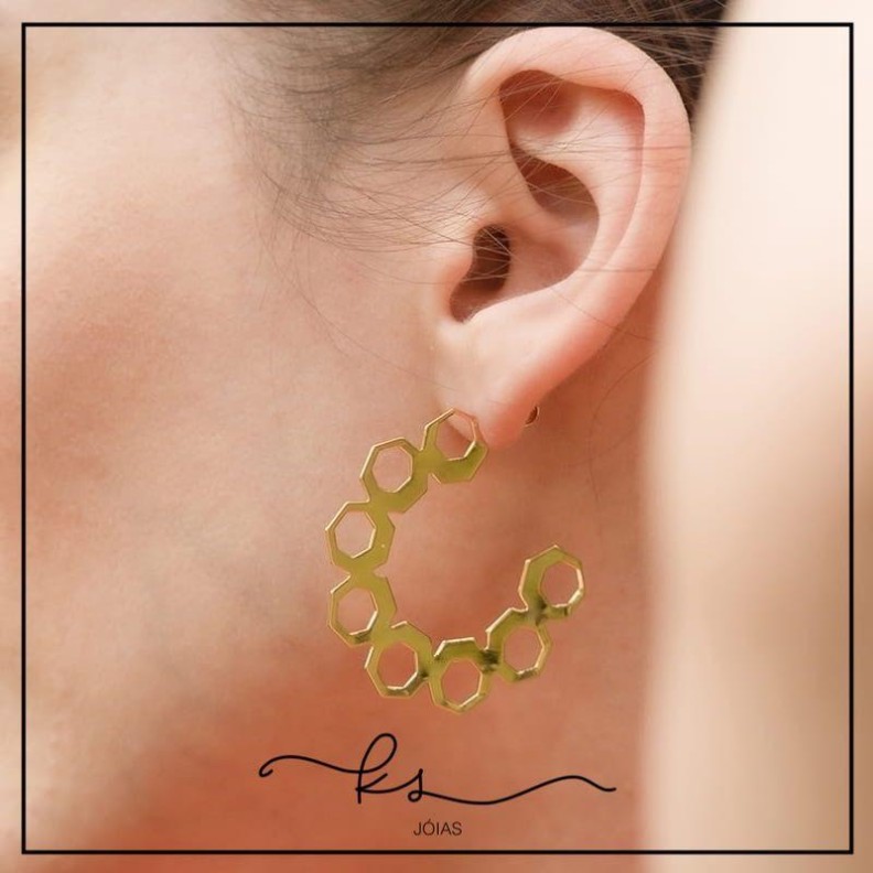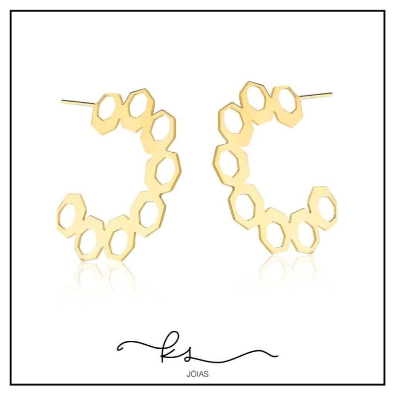 brinco ouro argola 8 hexagonos lisosConfira opiniões e avaliações de clientes!