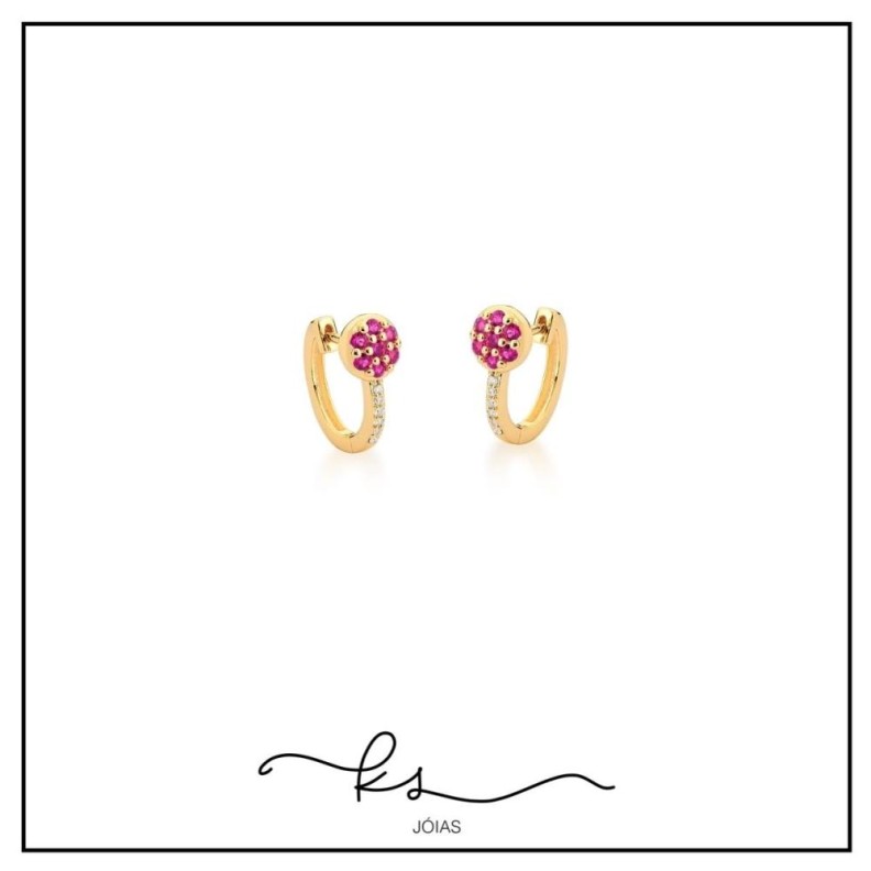 brinco ouro argola com flor zircônias rosaConfira opiniões e avaliações de clientes!