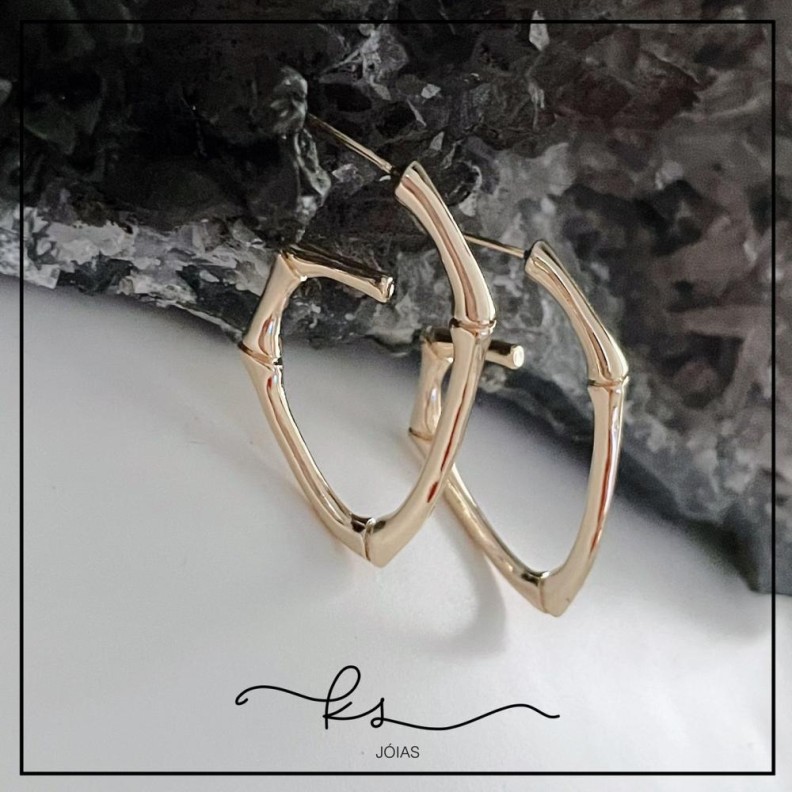 brinco ouro argola oval forma bambuConfira opiniões e avaliações de clientes!