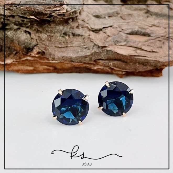 brinco ouro bola cristal azul escuro GGConfira opiniões e avaliações de clientes!