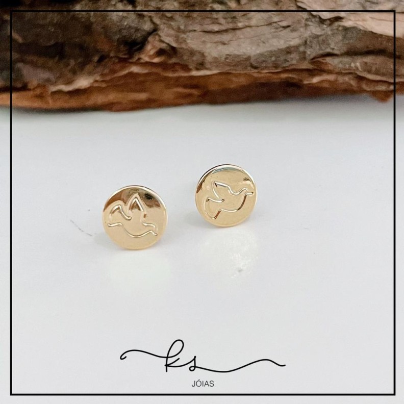 brinco ouro bolinha chapada desenho espírito santoConfira opiniões e avaliações de clientes!