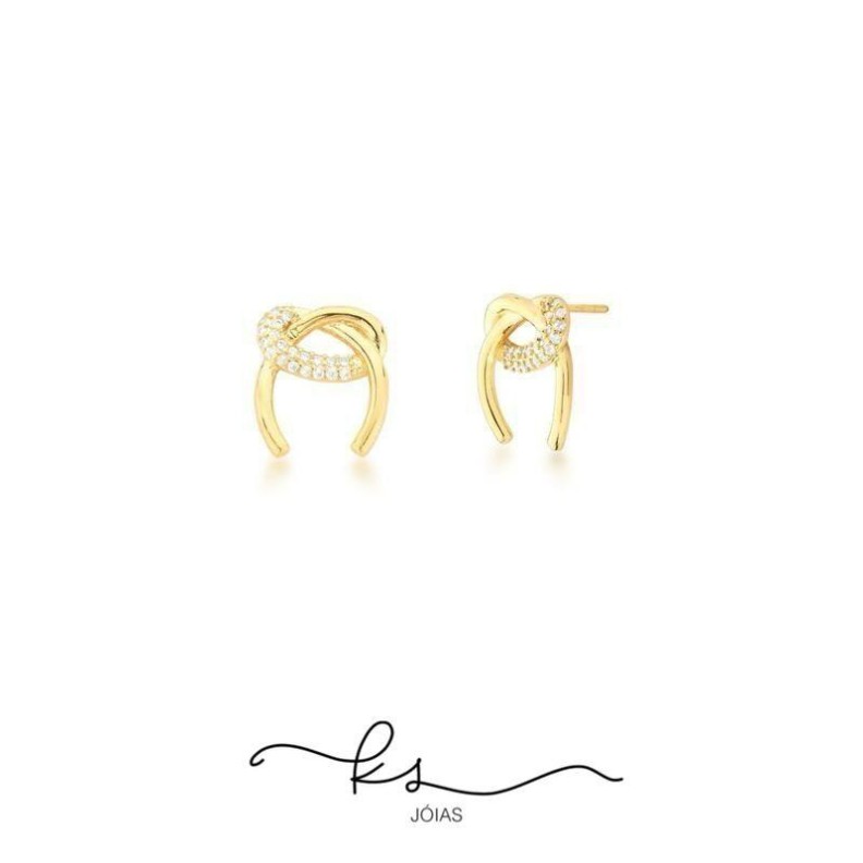 brinco ouro cruvo com nó cravejado zirconiasConfira opiniões e avaliações de clientes!
