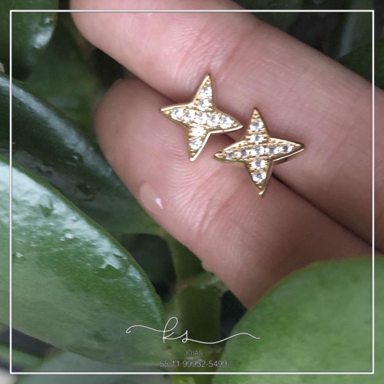 brinco ouro estrela 4 pontas cravejadaConfira opiniões e avaliações de clientes!