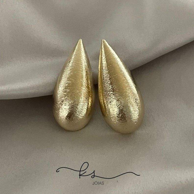 brinco ouro gota alongada texturizadaConfira opiniões e avaliações de clientes!