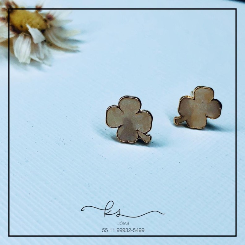 brinco ouro infantil trevo branco gliterConfira opiniões e avaliações de clientes!