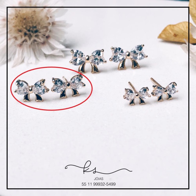 brinco ouro laço cristal MConfira opiniões e avaliações de clientes!