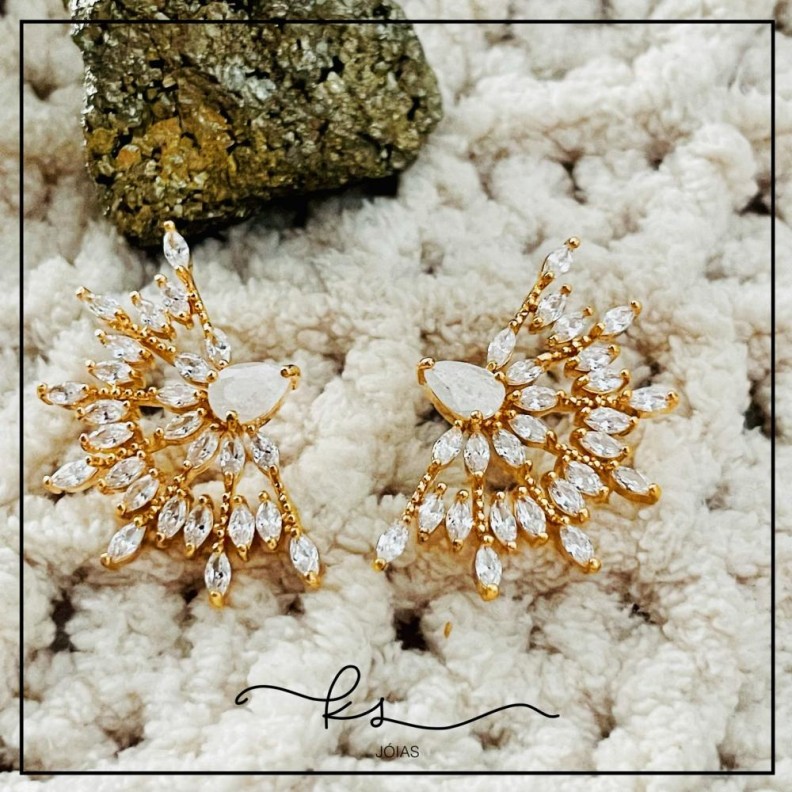 brinco ouro leque navetes cristalConfira opiniões e avaliações de clientes!