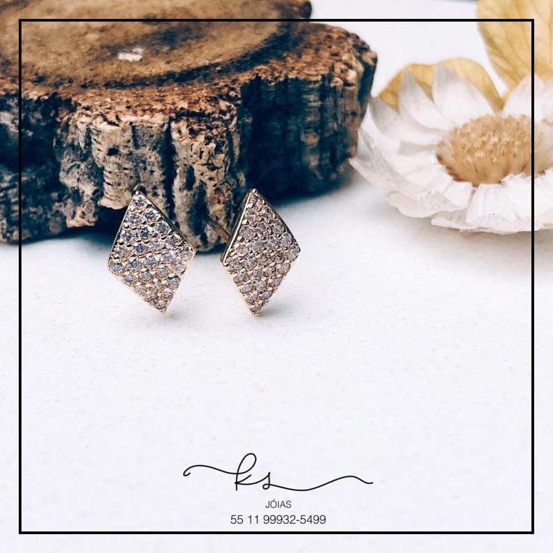 brinco ouro losango pequeno curvado todo cravejadoConfira opiniões e avaliações de clientes!