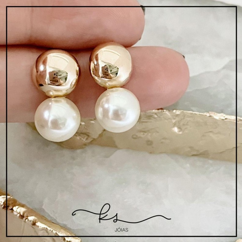 brinco ouro meia bola com bolinha pérolaConfira opiniões e avaliações de clientes!