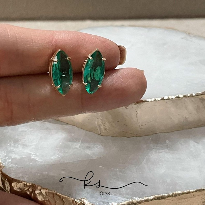 brinco ouro navete cristal verdeConfira opiniões e avaliações de clientes!