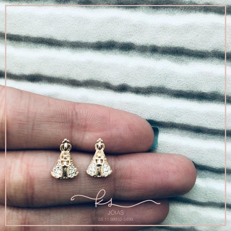 brinco ouro nossa senhora cravejada zirconiasConfira opiniões e avaliações de clientes!