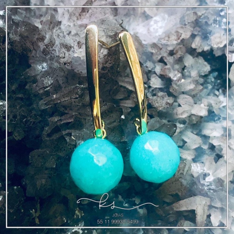 brinco ouro pendurado bolinha pedra turquesaConfira opiniões e avaliações de clientes!
