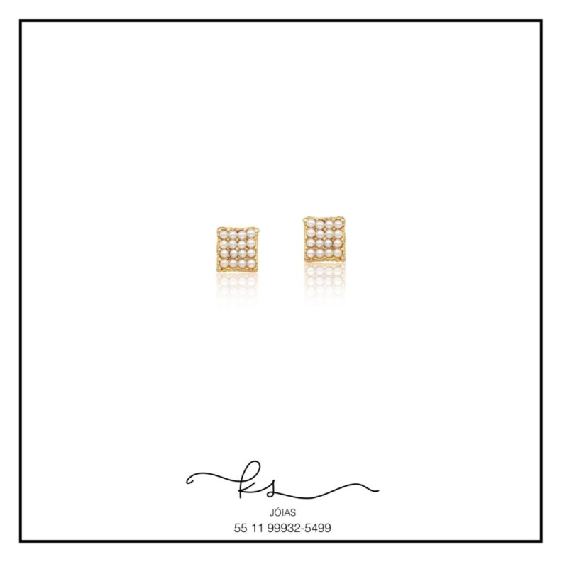 brinco ouro quadradinho cravejado perolasConfira opiniões e avaliações de clientes!