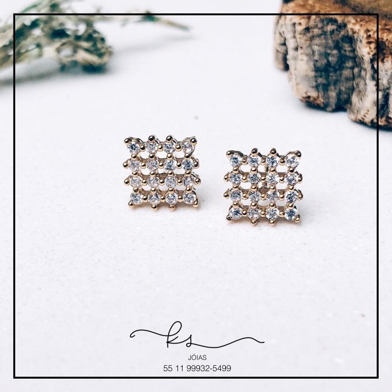 brinco ouro quadrado todo pontilhado zirconiasConfira opiniões e avaliações de clientes!