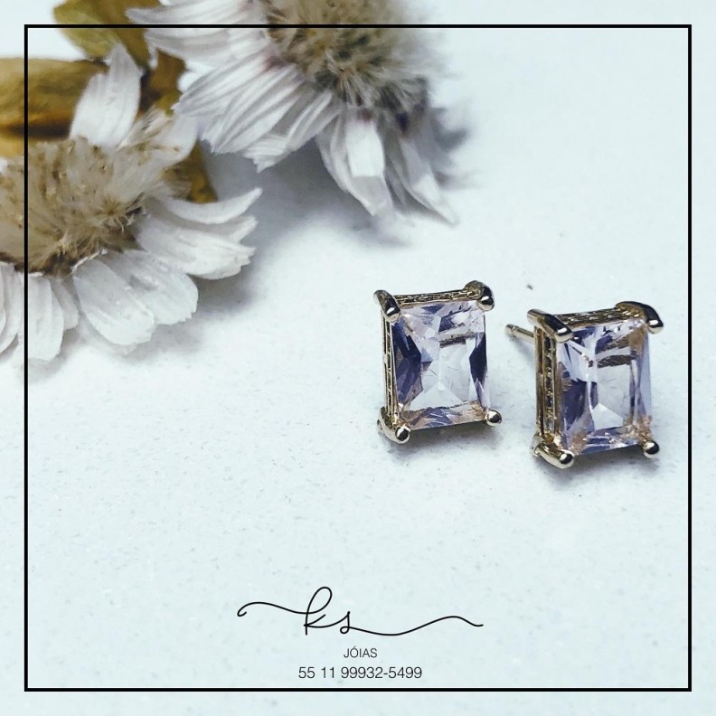 brinco ouro retangulo cristal rosaConfira opiniões e avaliações de clientes!