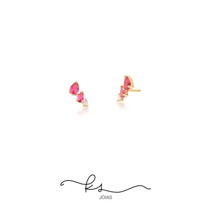 Brinco ouro três gotas cristal degradê rosaConfira opiniões e avaliações de clientes!