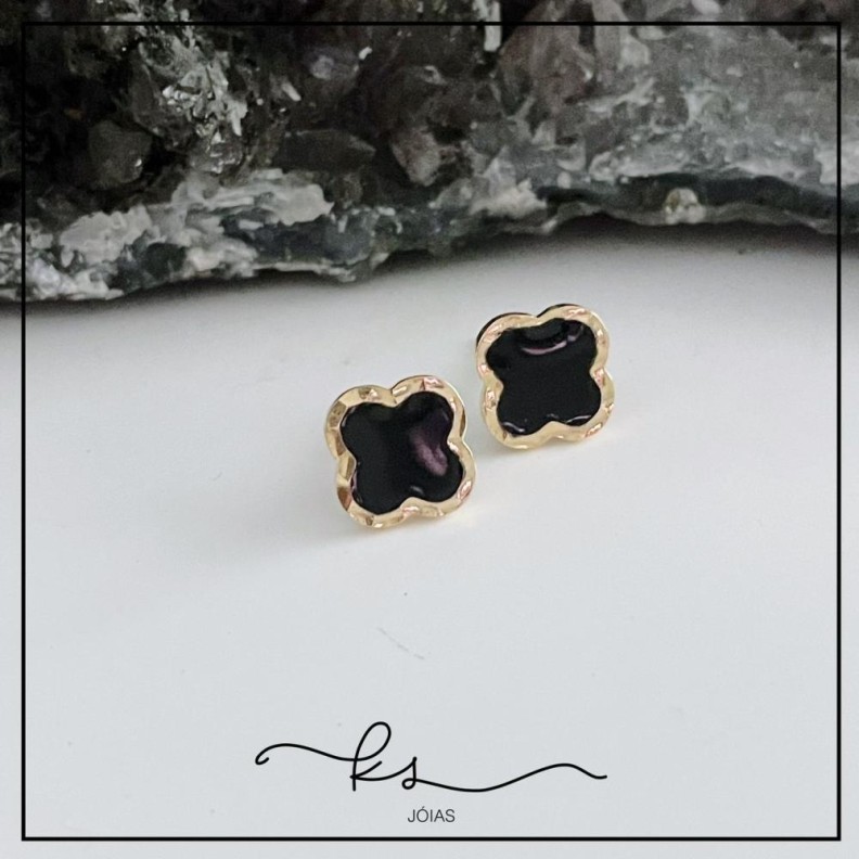brinco ouro trevo resina pretoConfira opiniões e avaliações de clientes!