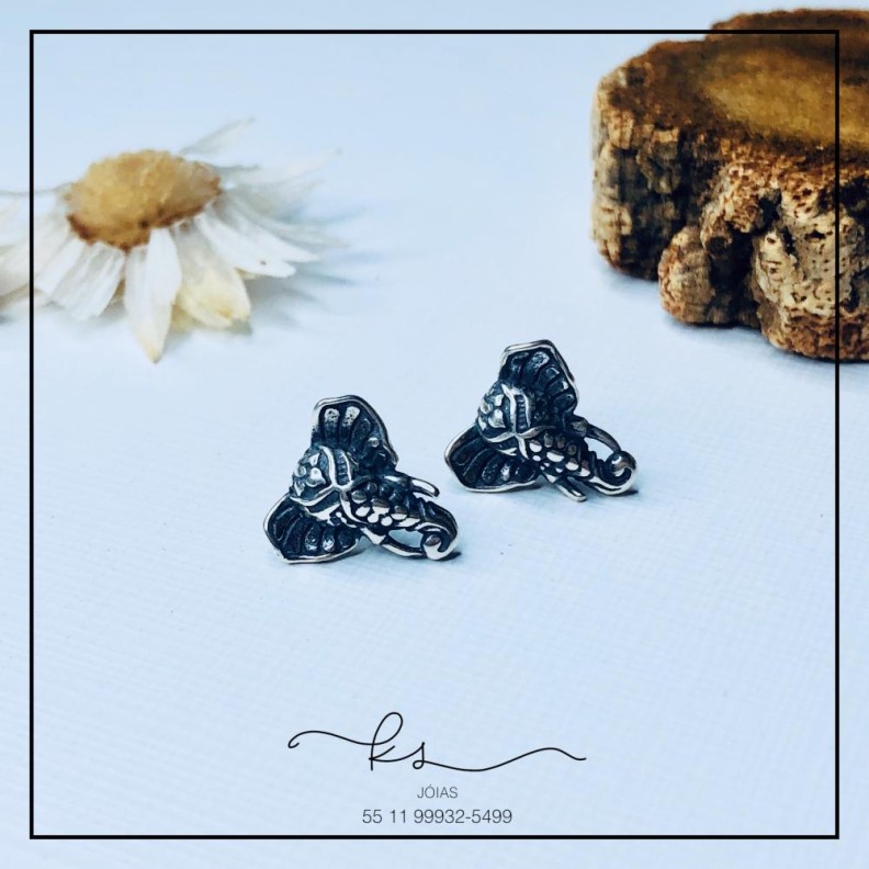 brinco prata envelhecida elefante rosto medioConfira opiniões e avaliações de clientes!