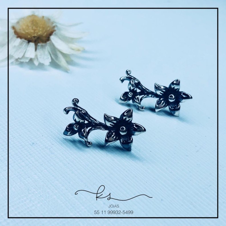 brinco prata envelhecida galho com floresConfira opiniões e avaliações de clientes!