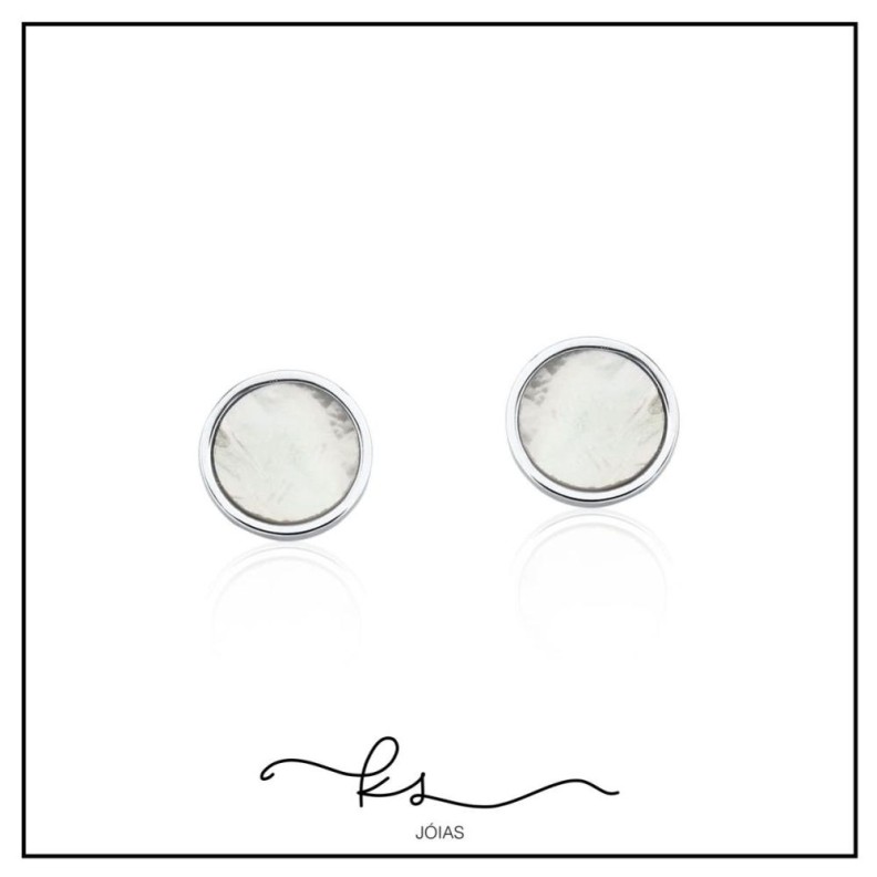 brinco ródio 2 em 1 bolinha + meio círculo madrepérolaConfira opiniões e avaliações de clientes!
