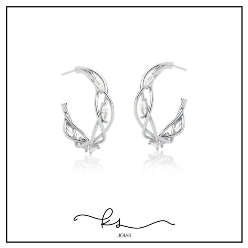 brinco ródio argola trançada com navetes cristalConfira opiniões e avaliações de clientes!