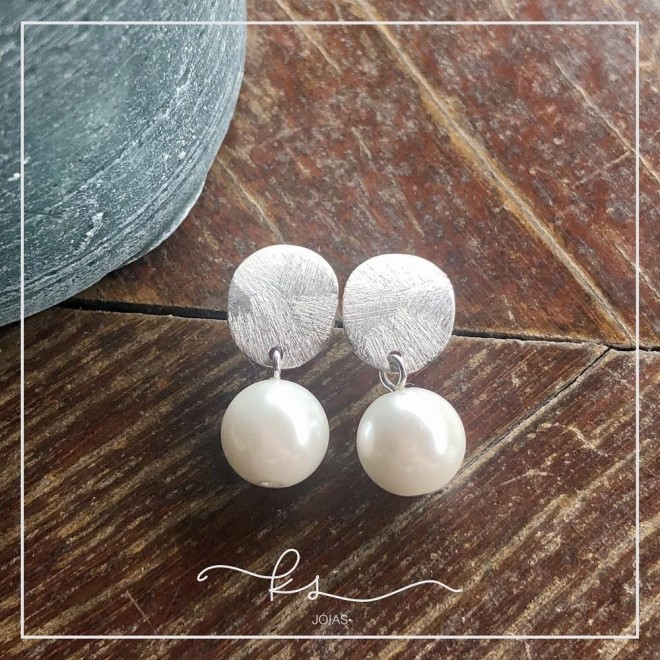 brinco rodio bolinha chapada riscada com perola penduradaConfira opiniões e avaliações de clientes!