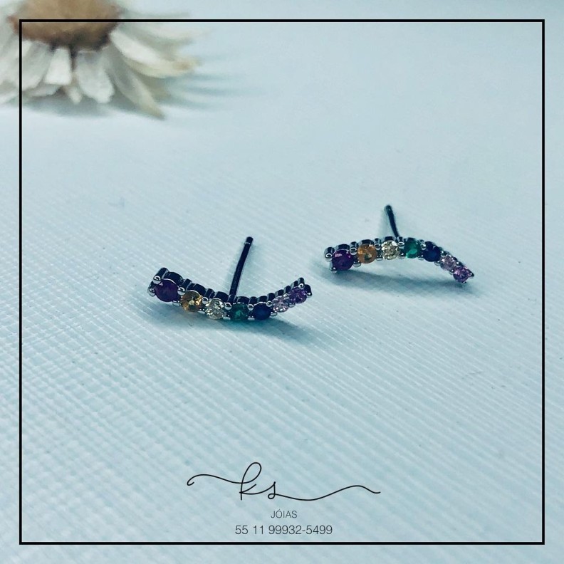 brinco rodio curva fio de zirconias rainbowConfira opiniões e avaliações de clientes!