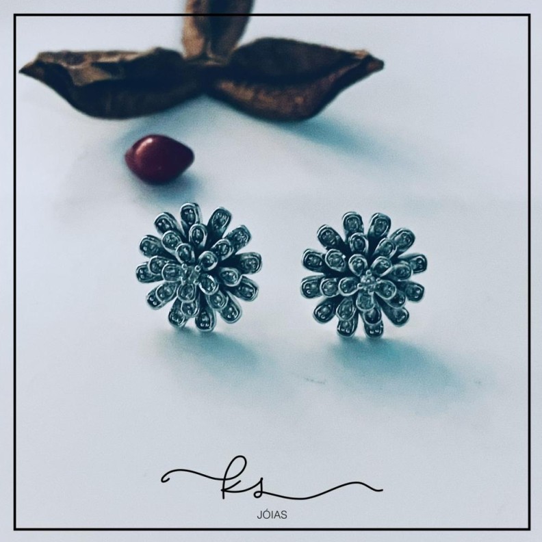 brinco rodio flor 3d com petalas zirconiasConfira opiniões e avaliações de clientes!