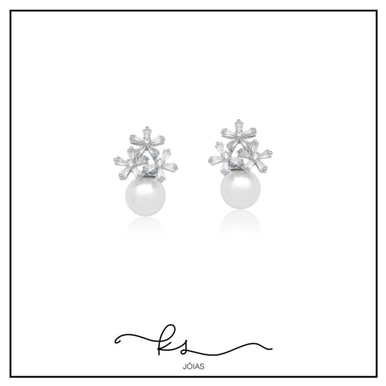 brinco ródio flores cristal com bolinha pérolaConfira opiniões e avaliações de clientes!