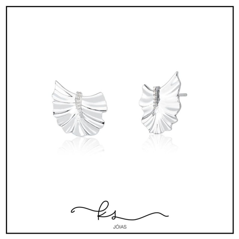 brinco ródio folha com meio zirconiasConfira opiniões e avaliações de clientes!