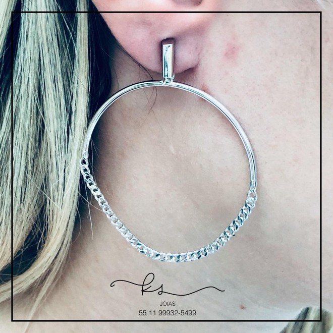 brinco rodio meia argola pendurada com correnteConfira opiniões e avaliações de clientes!