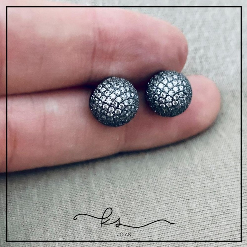 brinco ródio negro bolinha cravejada zircôniasConfira opiniões e avaliações de clientes!