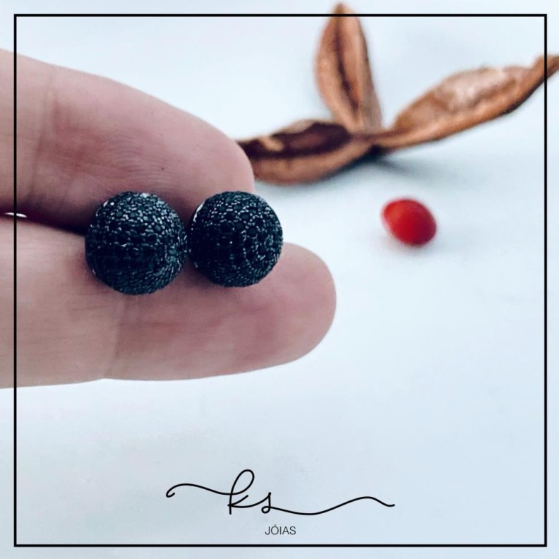 brinco ródio negro bolinha cravejada zircônias negrasConfira opiniões e avaliações de clientes!
