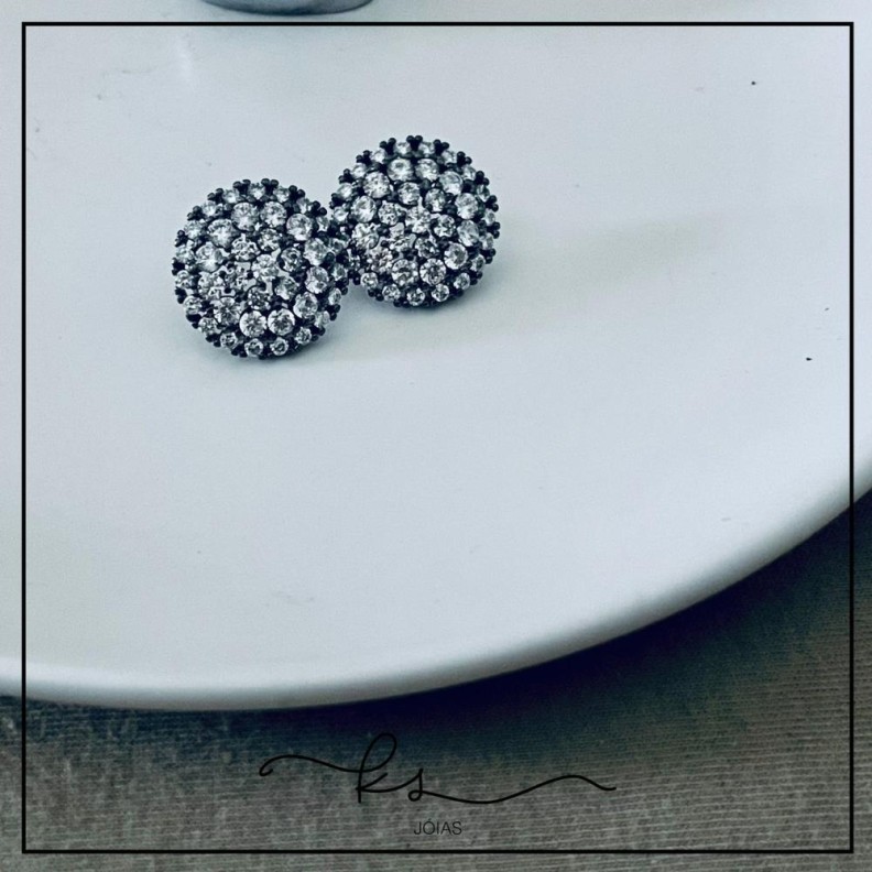 brinco ródio negro círculo grande bolinhas cristalConfira opiniões e avaliações de clientes!