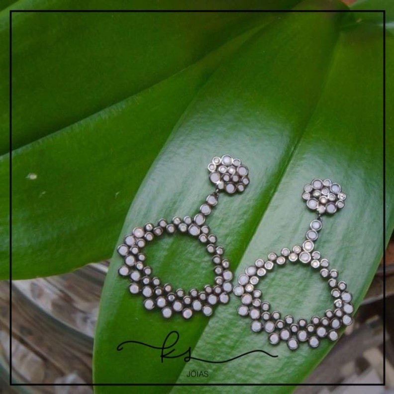 brinco ródio negro grande pendurado redondo vazado todo cravejado zircônias rosa cintilanteConfira opiniões e avaliações de clientes!